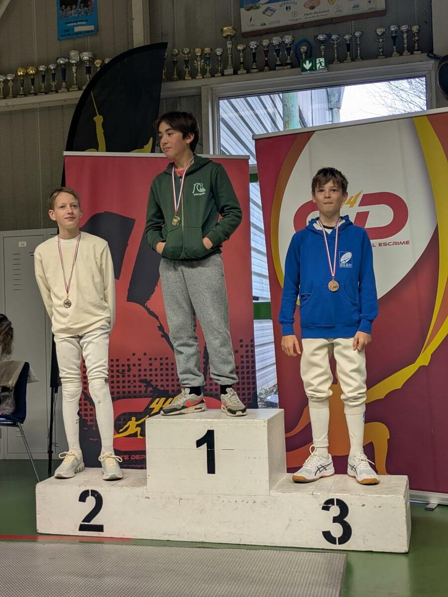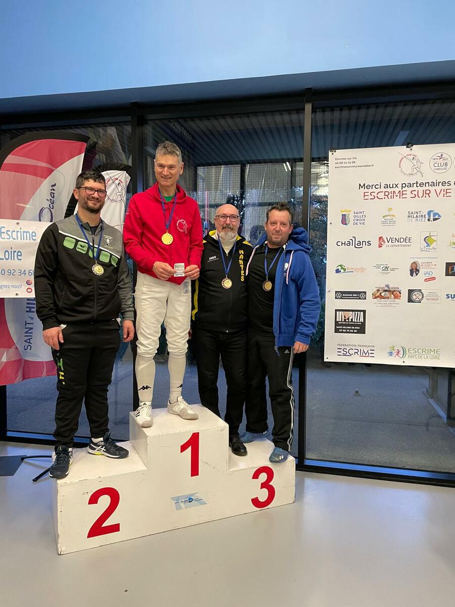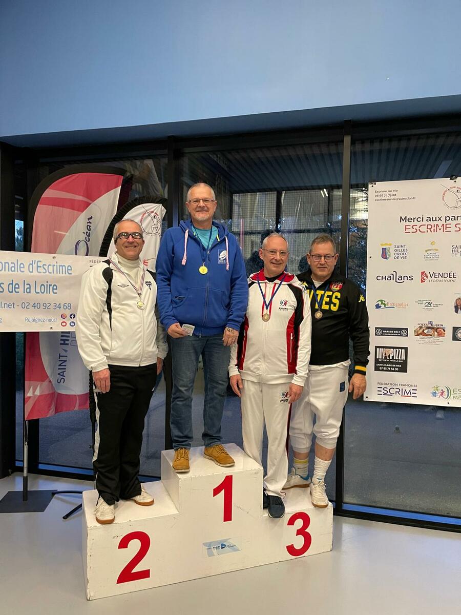 Epée et au fleuret en V3 : christophe 1er Epée V2 : Jérome 3eme ; Jean François 5eme